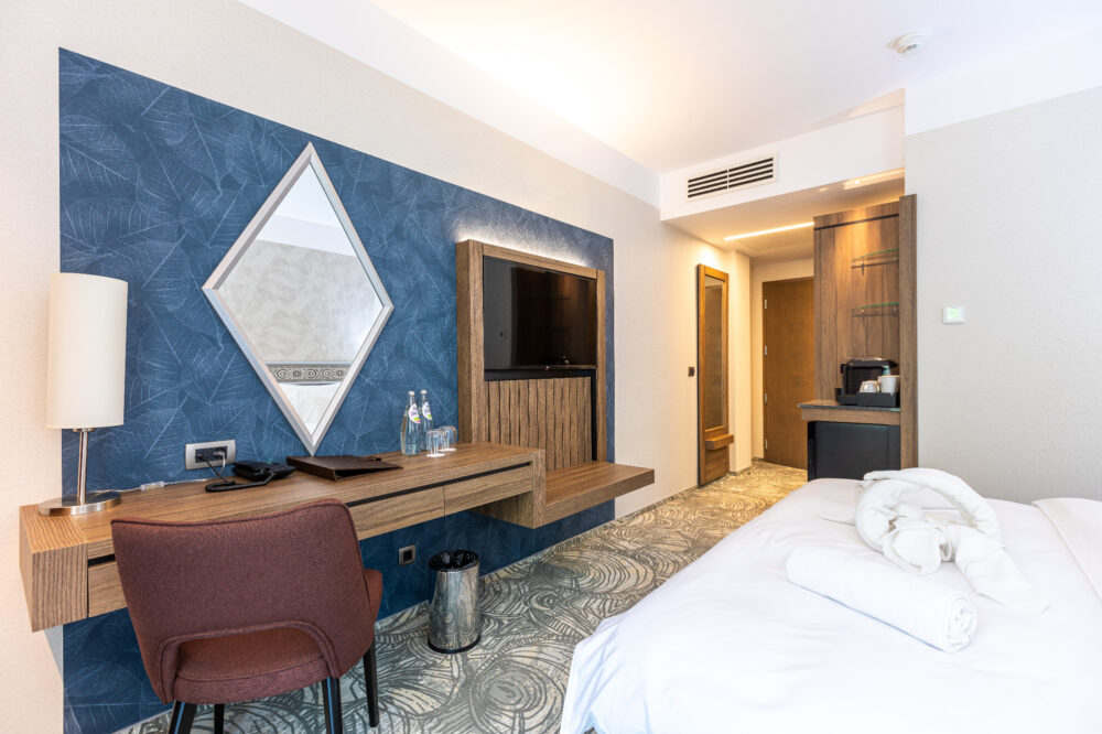 Elnöki lakosztályunk a legmagasabb színvonalat képviseli – elegáns berendezés, prémium szolgáltatások és tágas belső tér gondoskodik a különleges élményről.