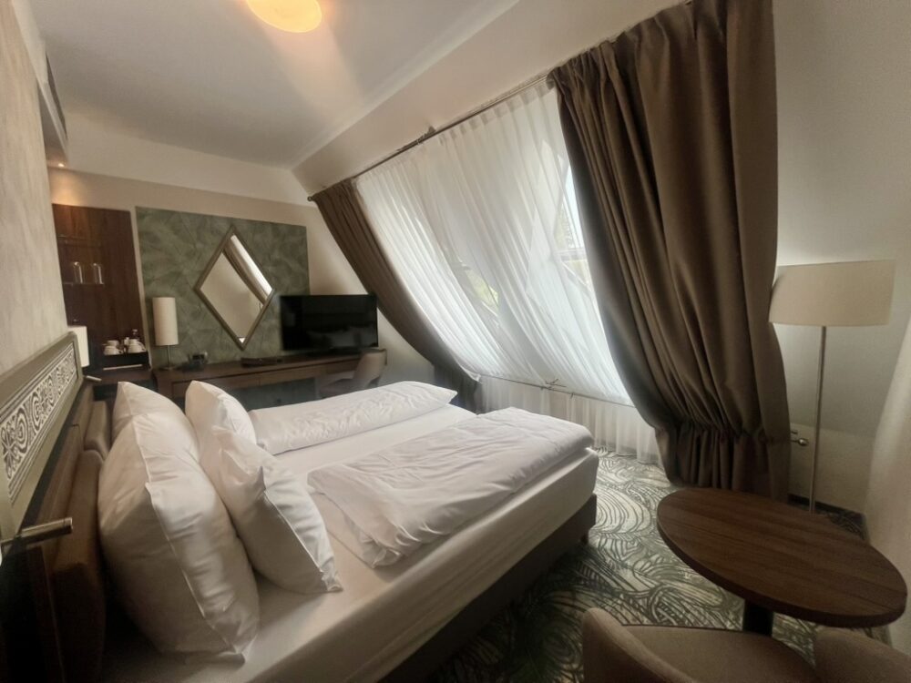 Kényelmes szoba franciaággyal és egy kihúzható fotellel – kisebb családok számára tökéletes megoldás.